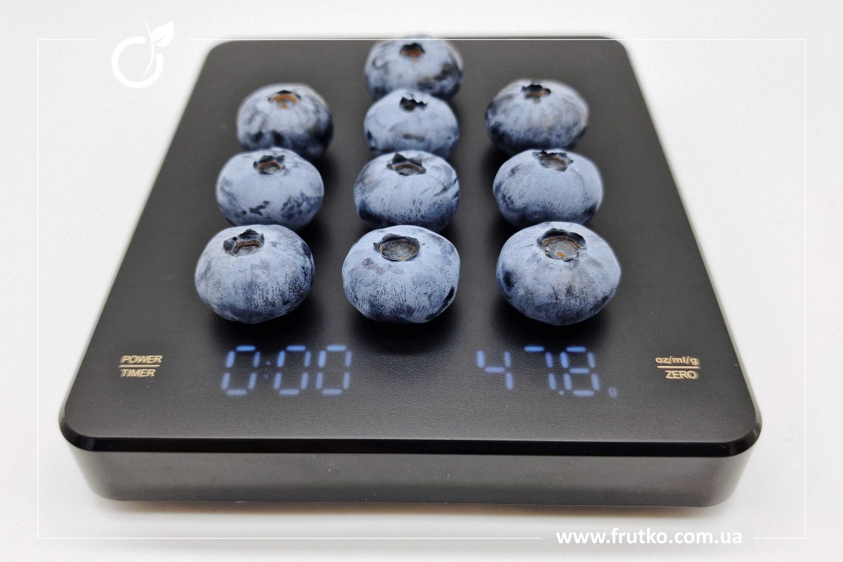 ✅ Ягода приплюснута, від середнього до великого розміру, має насичений десертний смак з ледь помітною кислинкою. В повній зрілості кількість водорозчинних сухих речовин (BRIX) досягає 11-12%