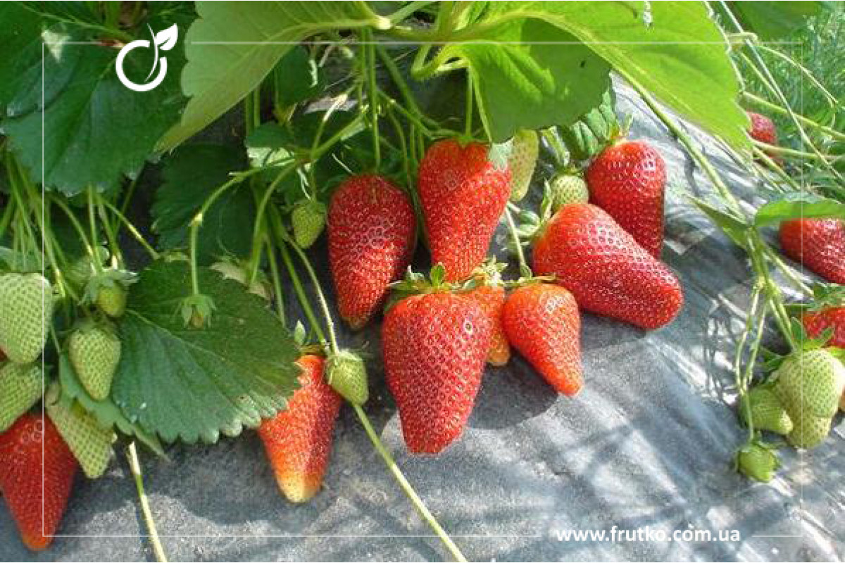 ✅ Ягода дуже великого розміру з середньою вагою плодів 30 г, видовженої правильної конічної форми, яскраво червоного забарвлення. М’якоть середньої щільності.